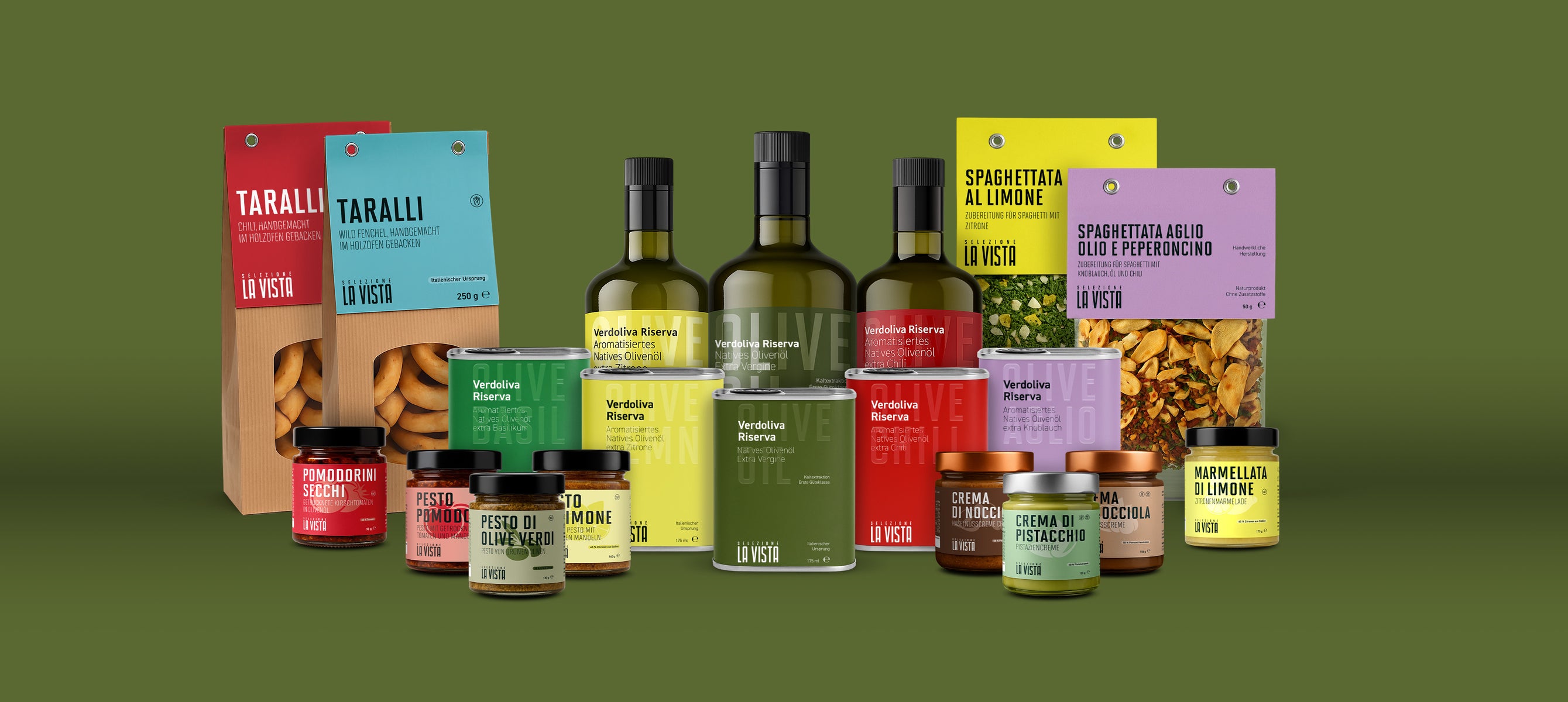 Unser Familienbetrieb bietet eine exklusive Auswahl an italienischen Köstlichkeiten an, die man selten bis gar nicht in Deutschland bekommen und genießen kann. Im Mittelpunkt steht dabei unser eigenes Olivenöl. Die Oliven für das Olio La Vista Olivenöl wachsen in den Hügeln von Kampanien und reifen unter der süditalienischen Sonne. Wir ernten wie vor 100 Jahren jede einzelne Olive von Hand. Dadurch garantieren wir höchste Qualität, schonen unsere wertvollen Olivenbäume und würdigen das traditionelle Handwerk.